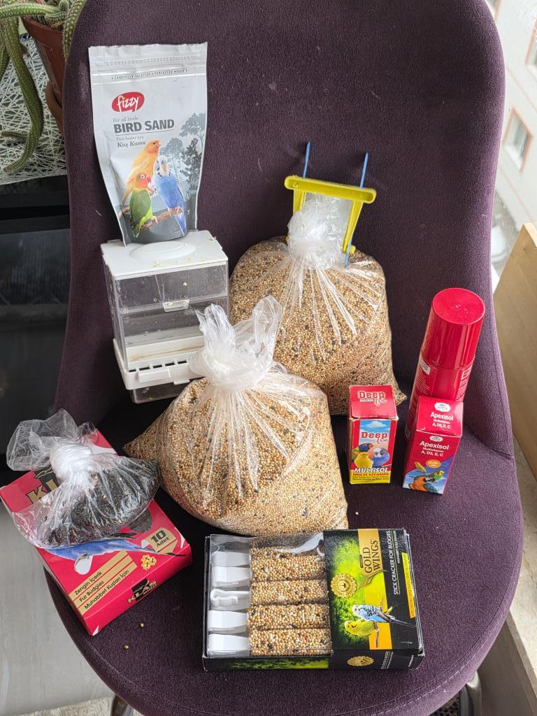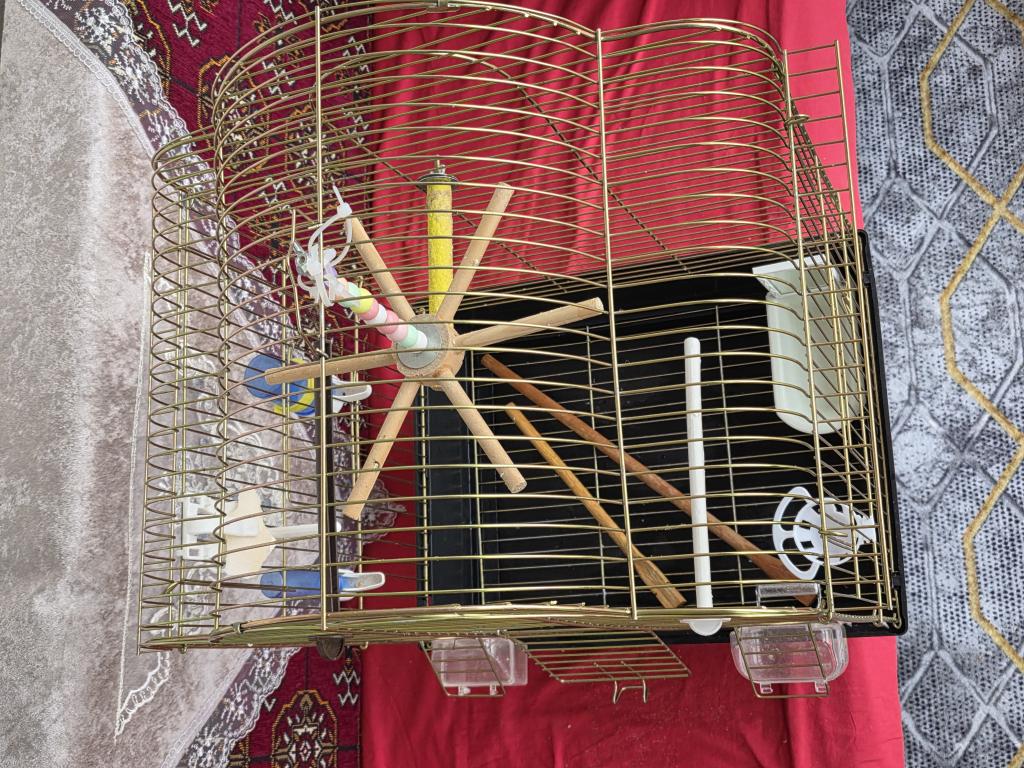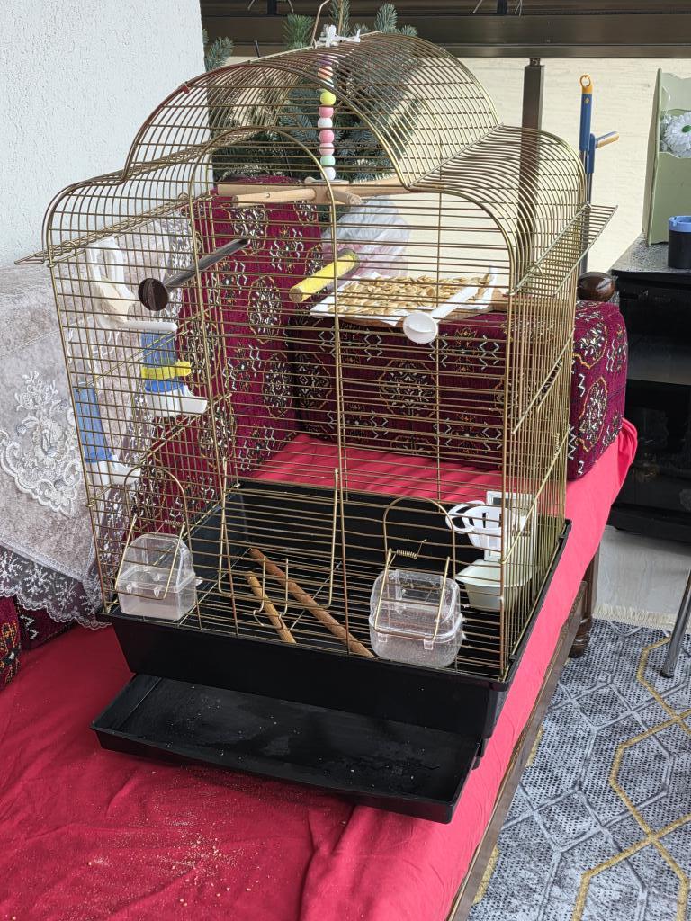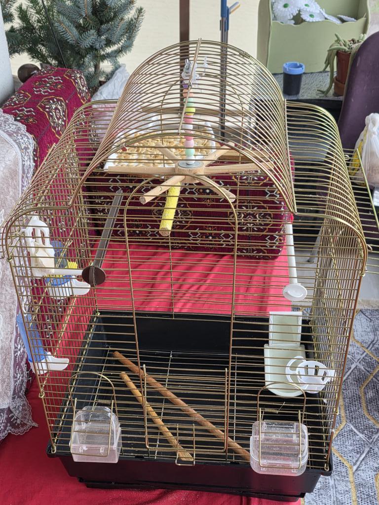 2 adet kuş kafesi bir tanesi büyük pirinç küçük olan boyalı ve 1 adet erkek yavru 6 aylık yemler ve görünen her şey dahil fiyatta