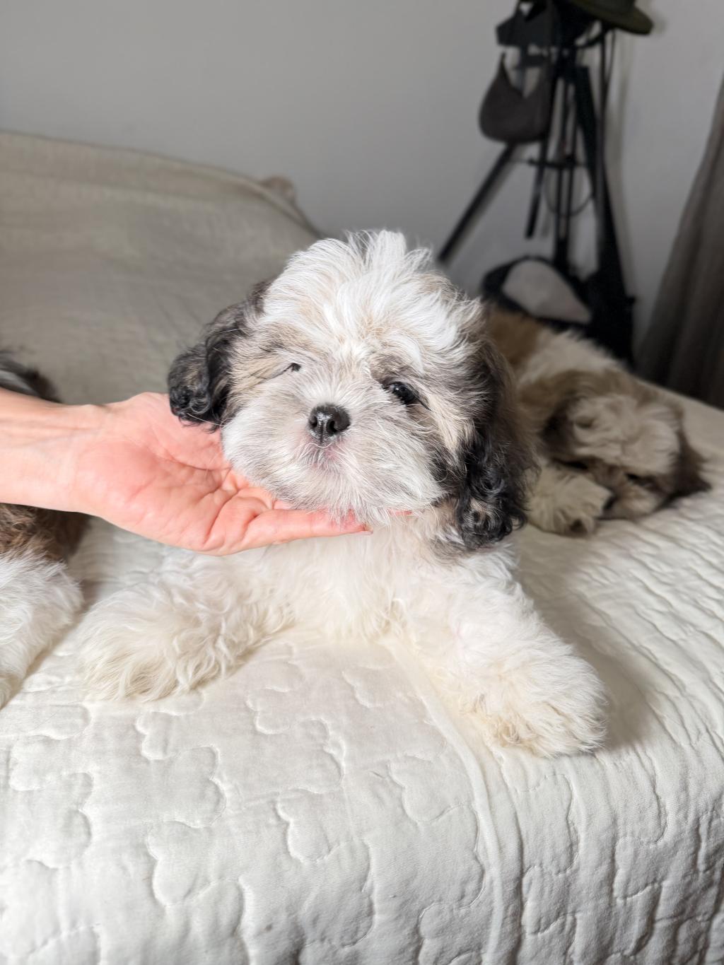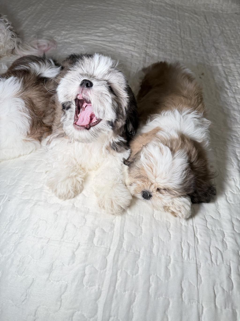 3 tane saf shih tzu yavruları, 3ü de erkek kardeşler, 3 aylık, aşıları daha yapılmamış.