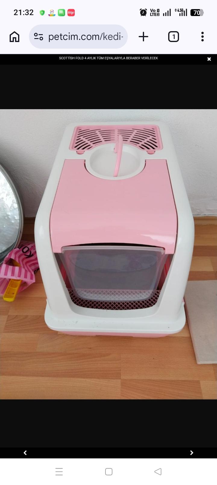 Çekmeceli tuvaleti, taşıma çantası, yatağı, mama ve su kabı, küreği, oyuncakları dahil herşeyiyle beraber verilecektir.