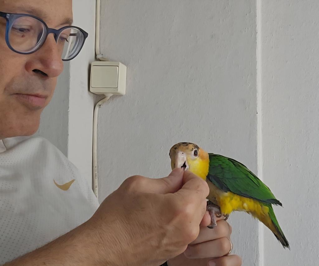 Ele gelir, her yerini sevdirir. Elden mama , çekirdek yer. Çok sevimli, keyifli daha 7 aylık öğrenmeye ve eğitilmeye hazır bir güzel bebek.