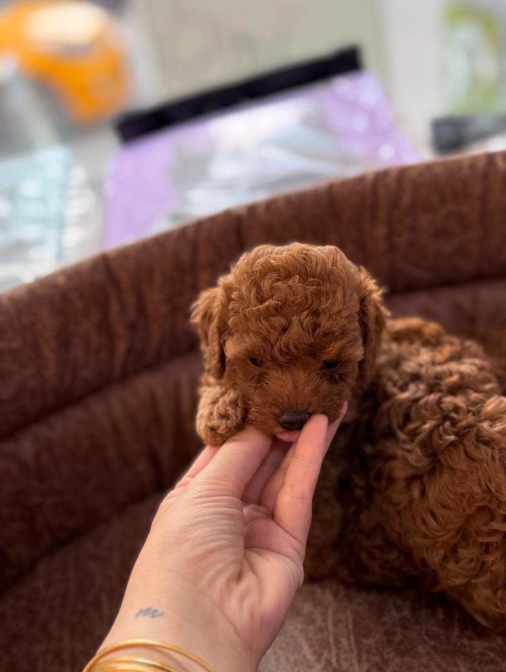 Kore kan aşılı poodle dişi erkek 2.3 kiloyu geçmez tüy dökmez kahverengi renkte çok sevimli yavrular.