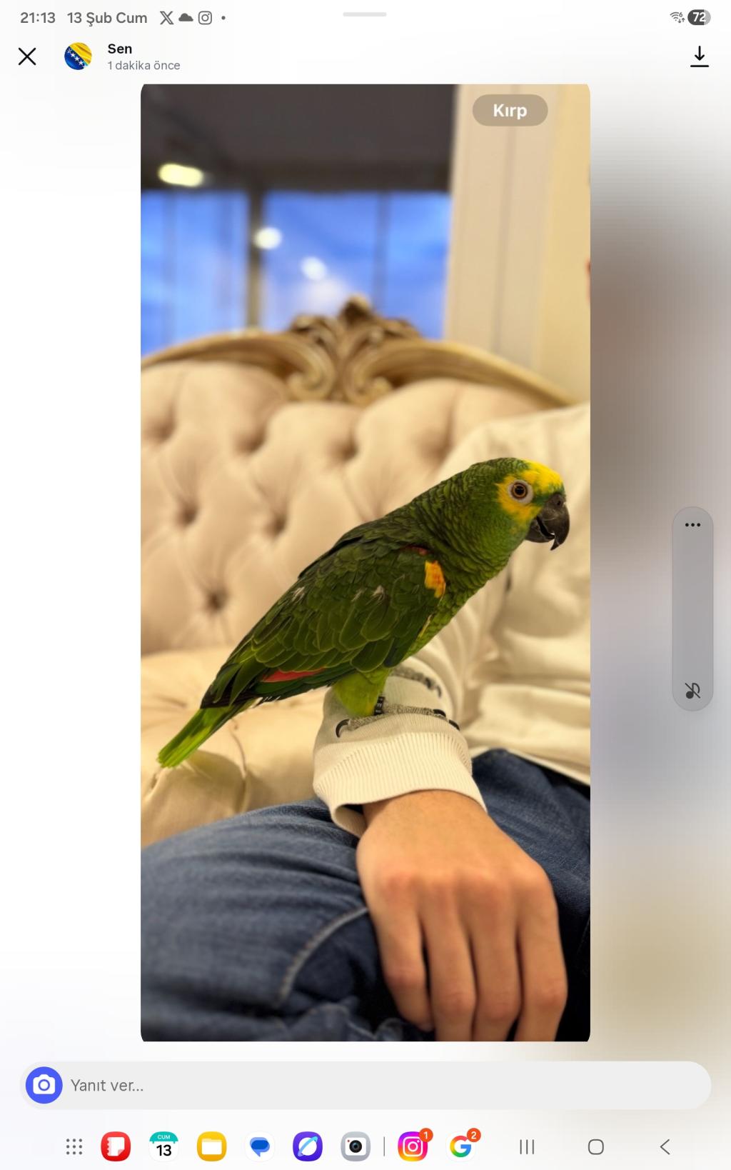 Kuşumuz gayet evcil ve cana yakın konuşabiliyor.