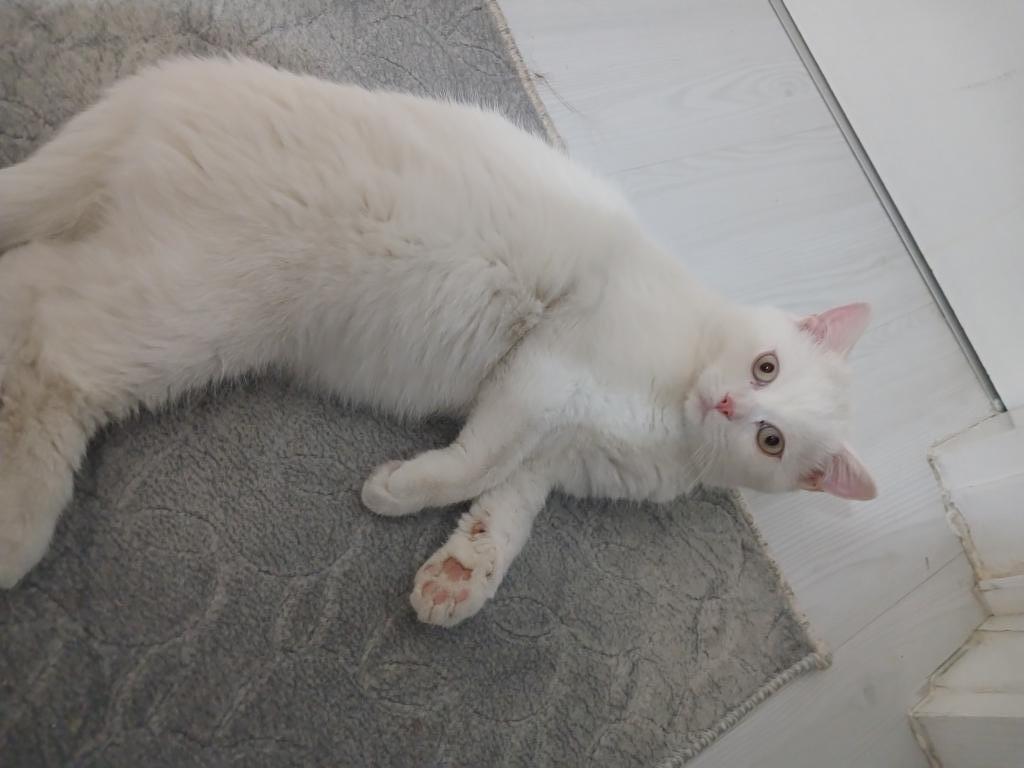Beyaz british sevimli oyun sever 5 aylık kedi tüm eşyaları ile birlikte verilecektir mama kabı yatağı çantası tuvaleti vs ilgilenen iletişime geçebilir