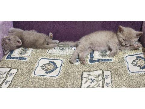 3 lilac 2 gri (4 erkek, 1 dişi) british shortair yavrular yeni yuvaları için hazırlar. Tuvalet ve kuru mama eğitimleri tam. 50 günlüklerdir. Şimdiden yeni yuvalarına hayırlı olsun.