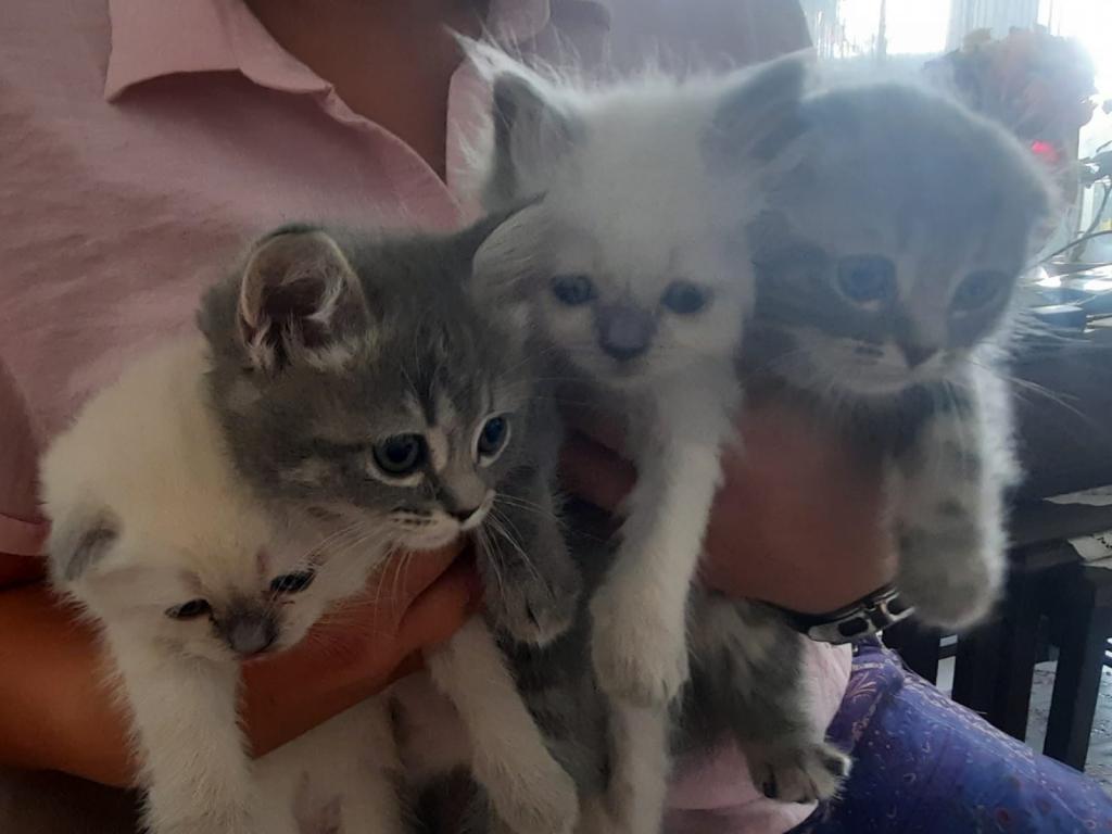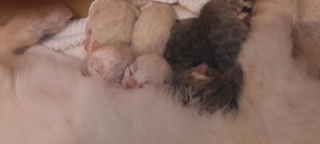 26 temmuzda doğdular. Anne British Blue Point, baba Scottish Fold. Gri British dişi, gri Scottish erkek. Beyaz Scottish erkek, beyaz British dişi.