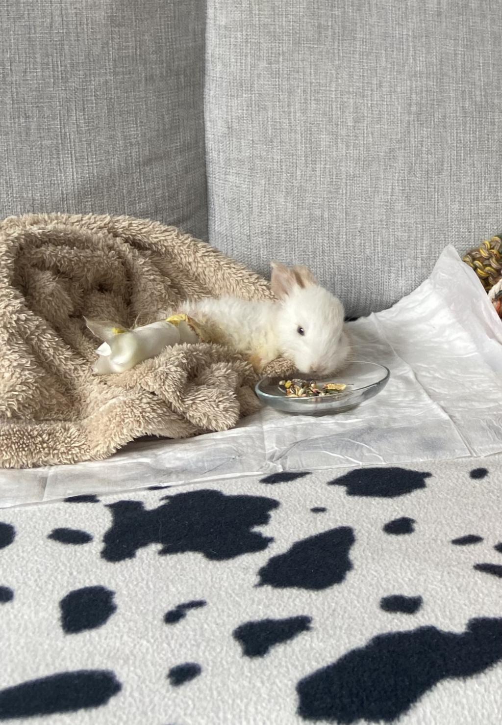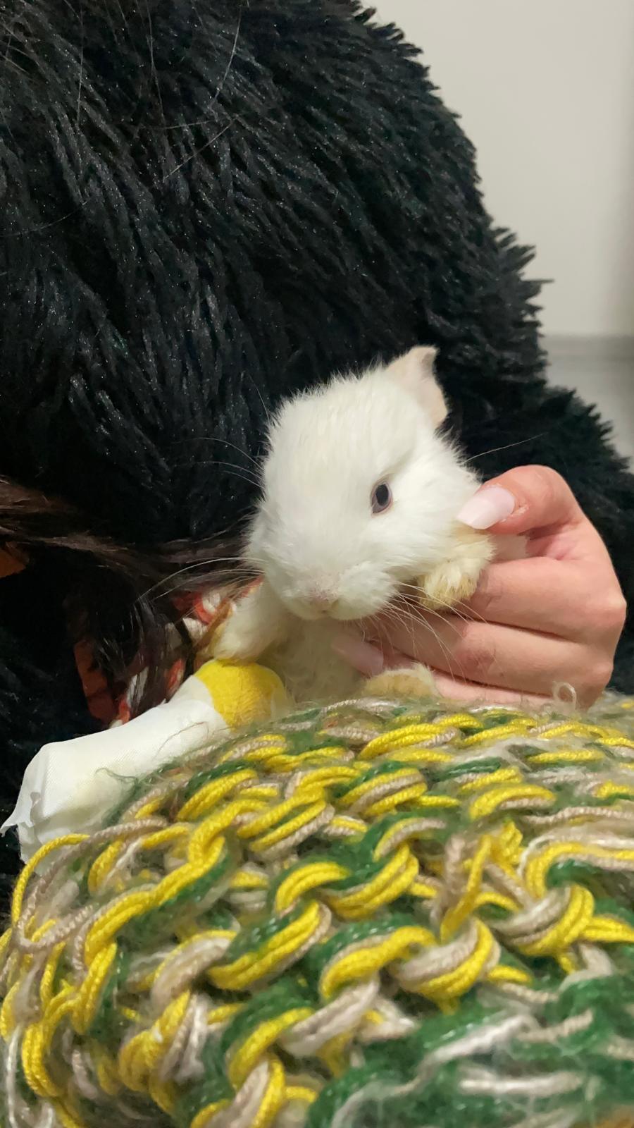 Tavşanın sağ arka bacağında kemik parçası çıkmıştı ve bacağı sallanıyordu biz de hemen veterinere götürdük.