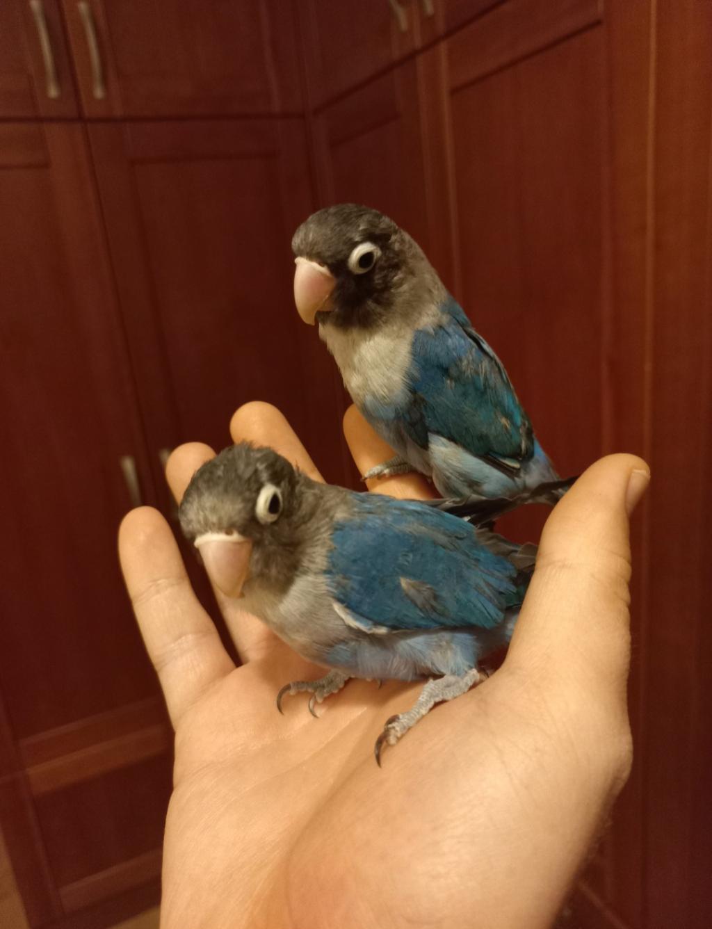 Alışmaları için kanat tüylerinin ve kuyruklarının ucunu kırptım, göğsüme alıp seviyorum duruyorlar avucumun içinde ikisi de dip dibe duruyorlar ama çok kuşum oldu.