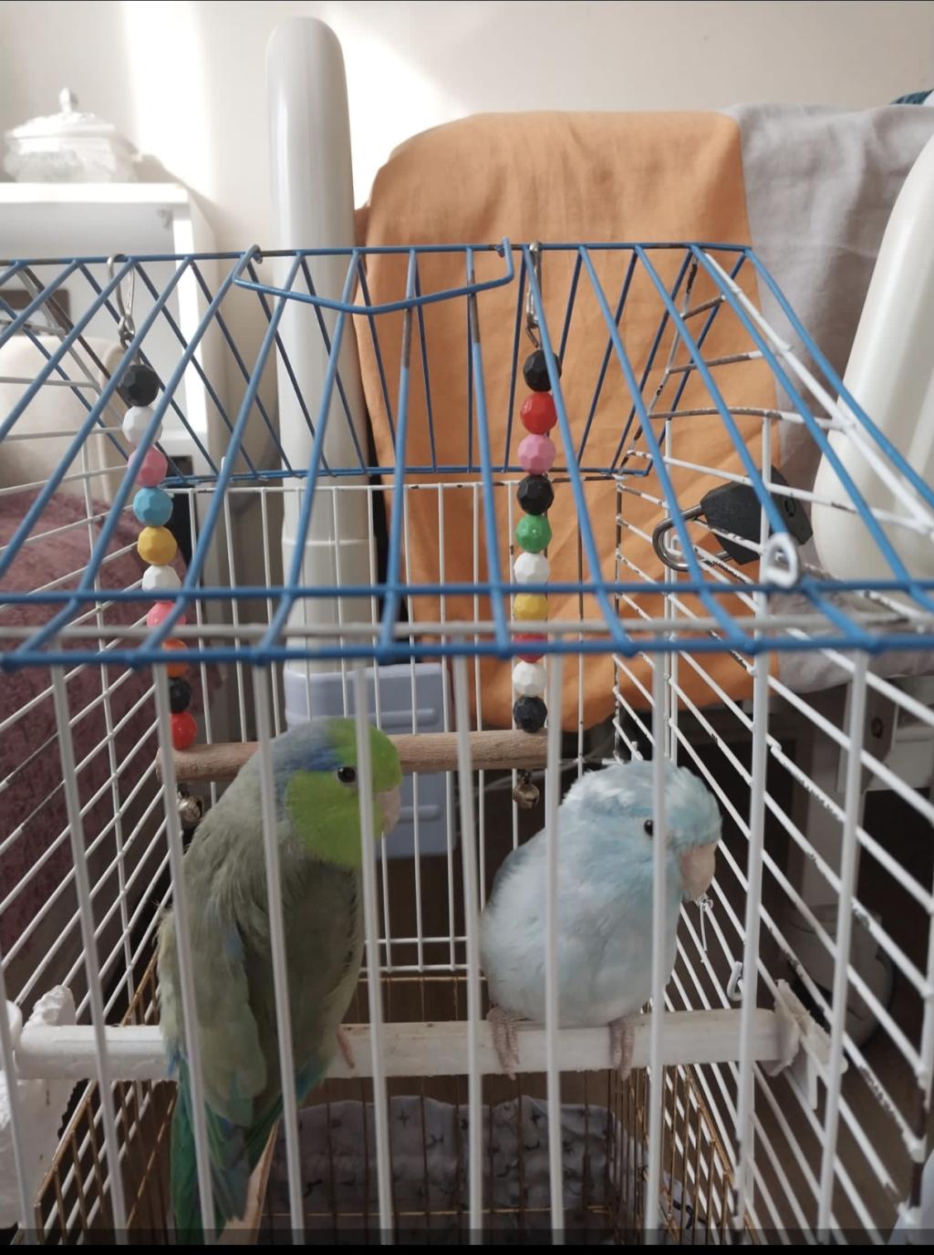 Çift forpus papağanı damızlık ikiside 11 aylık kafesiyle birlikte ful set suluklu yemlikli yavrulamaya müsait