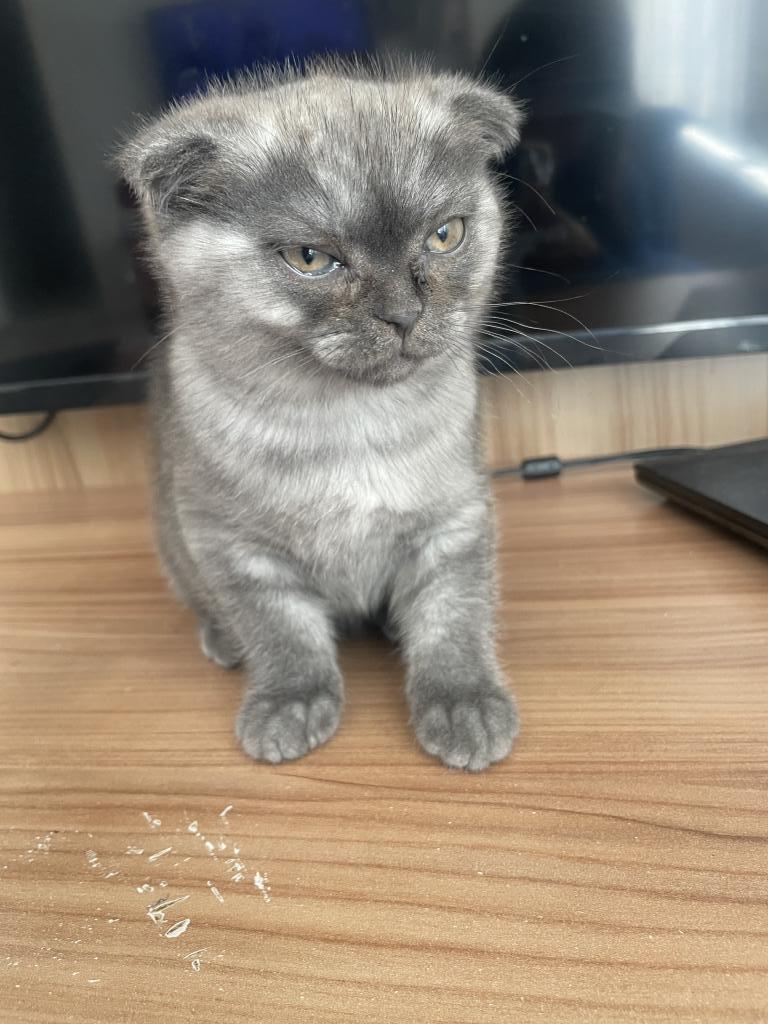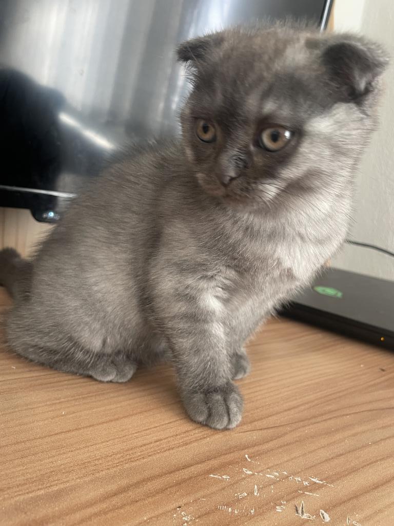 Fotoğraftan da görüldüğü gibi kulakları kıvrık, çok tatlı ve oyuncu bir bebek 🥹