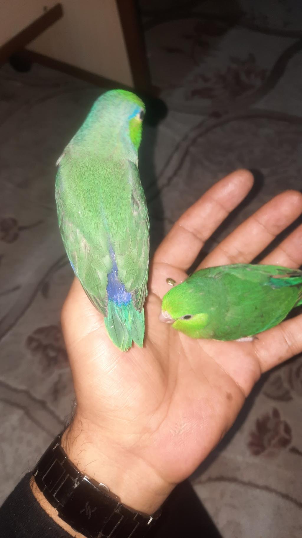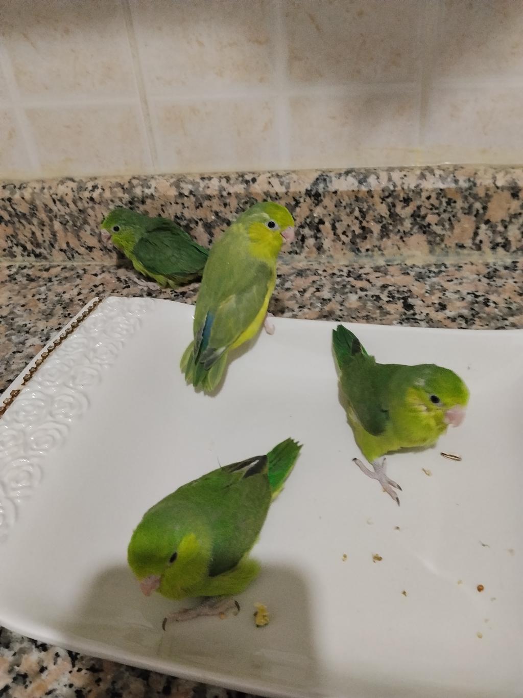 El besleme özenle bakılmış sağlıklı forpus yavrular.