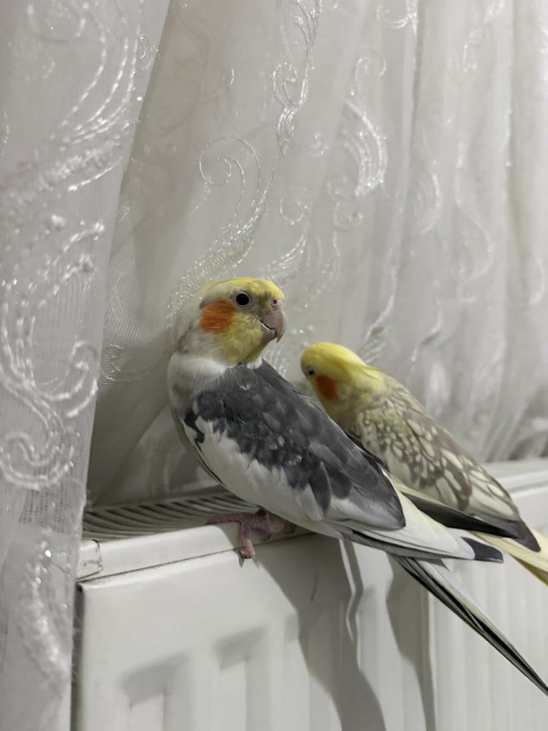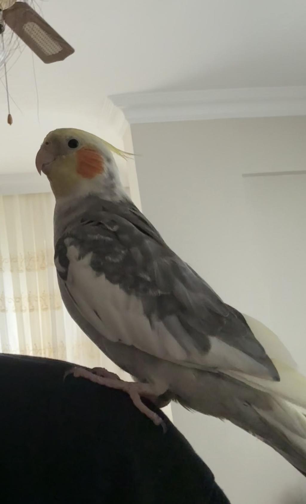 Erkek gri sultan papağanı çok sevimli cana yakın, ele omuza geliyor birkaç melodi biliyor.