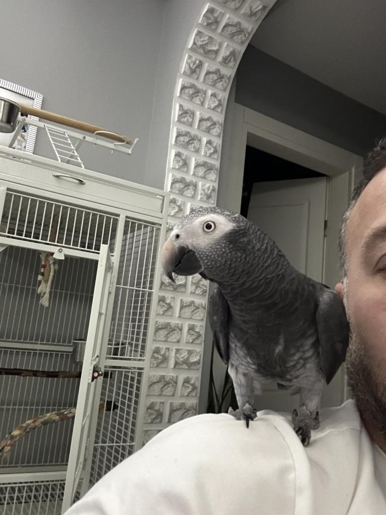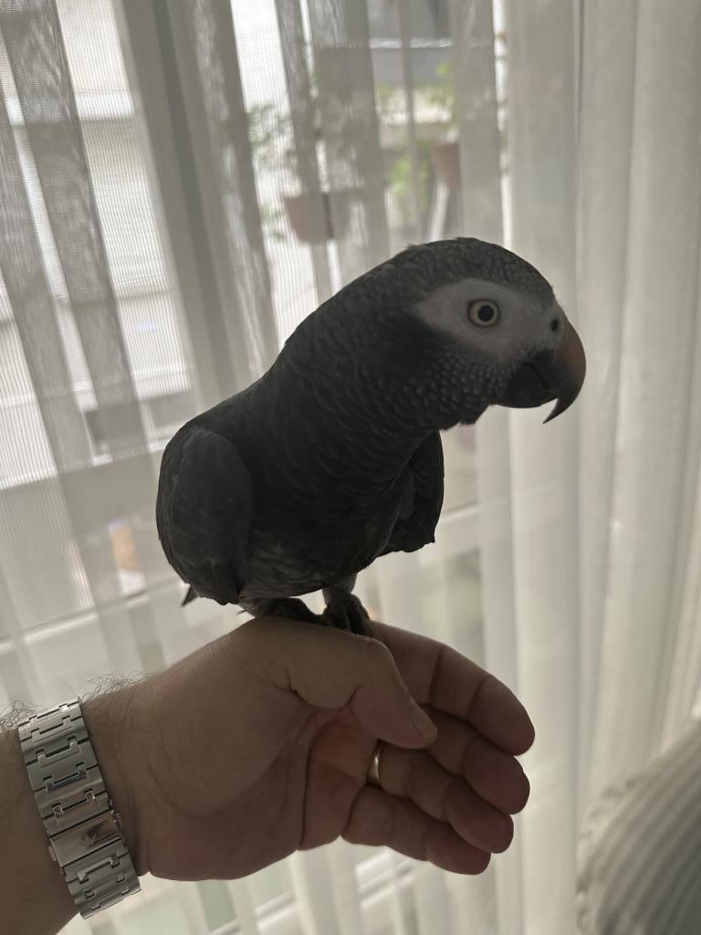 Full evcil timneh jako papağanımız insan ayırmaz, ele ve kola gelir, kendini sevdirir.
