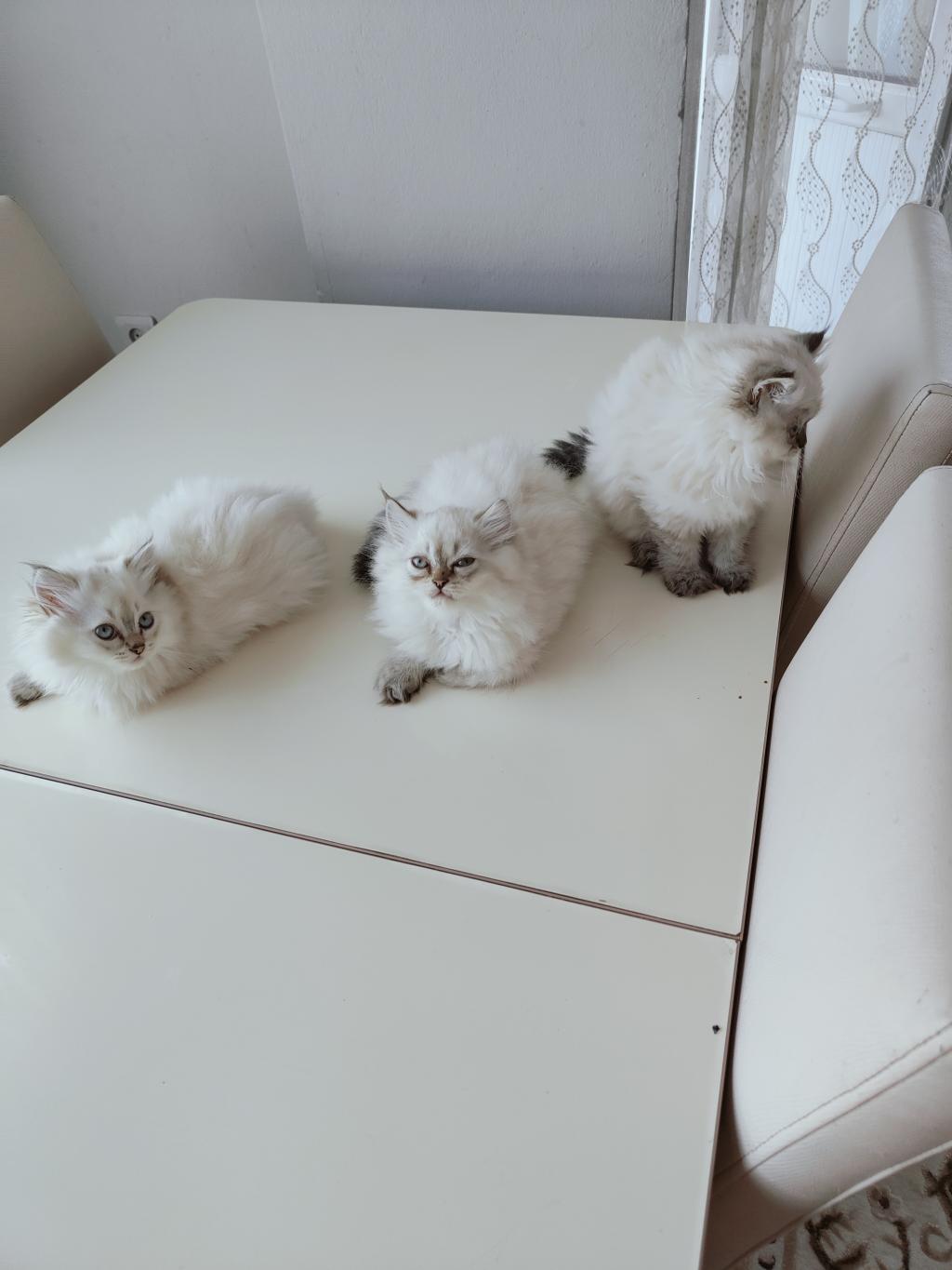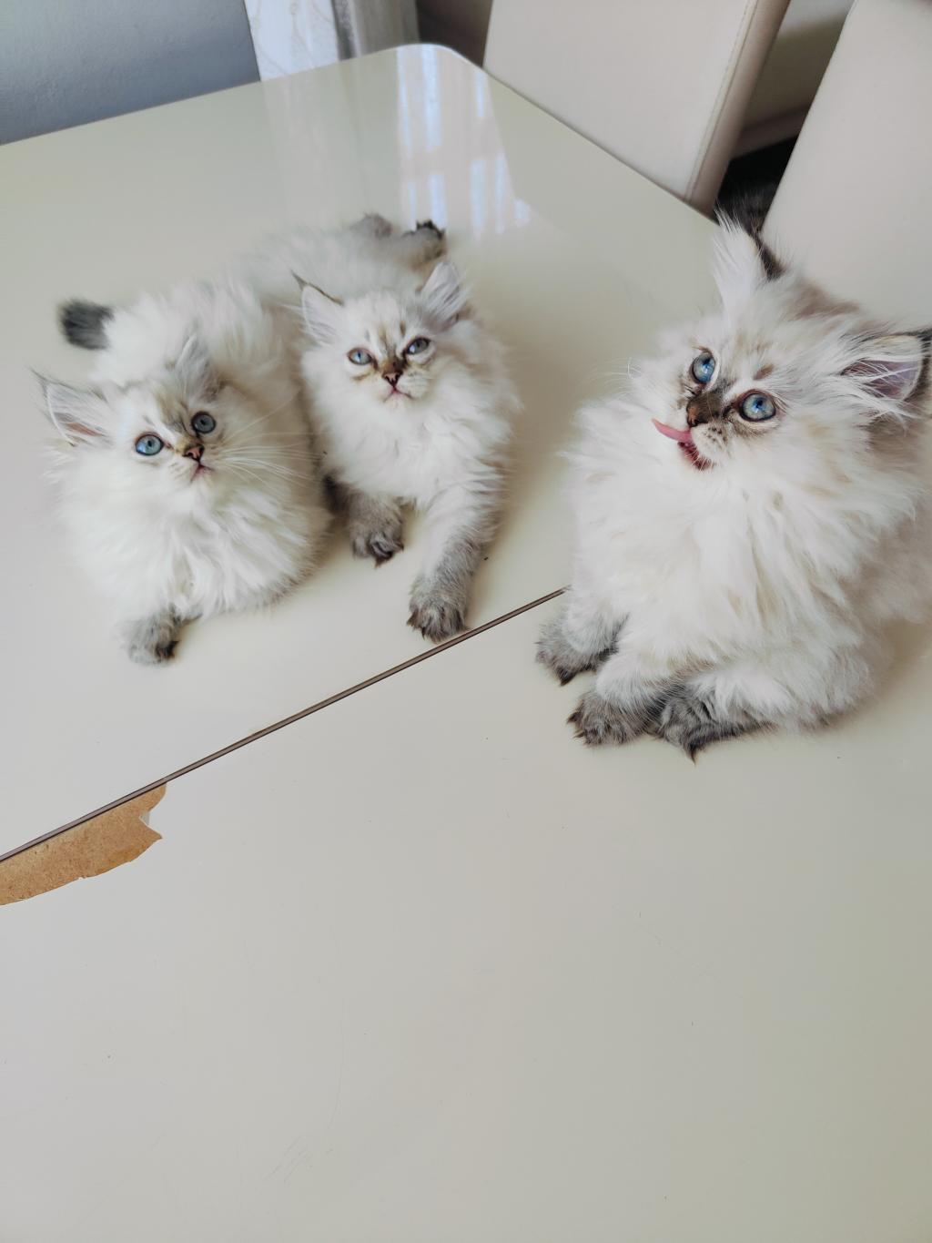 İki aylık eğitimliler oyuncu kediler iki dişi bir erkek
