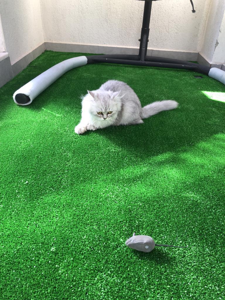 Gri renk çok uysal zıplamayan hoplamayan bir kedi.