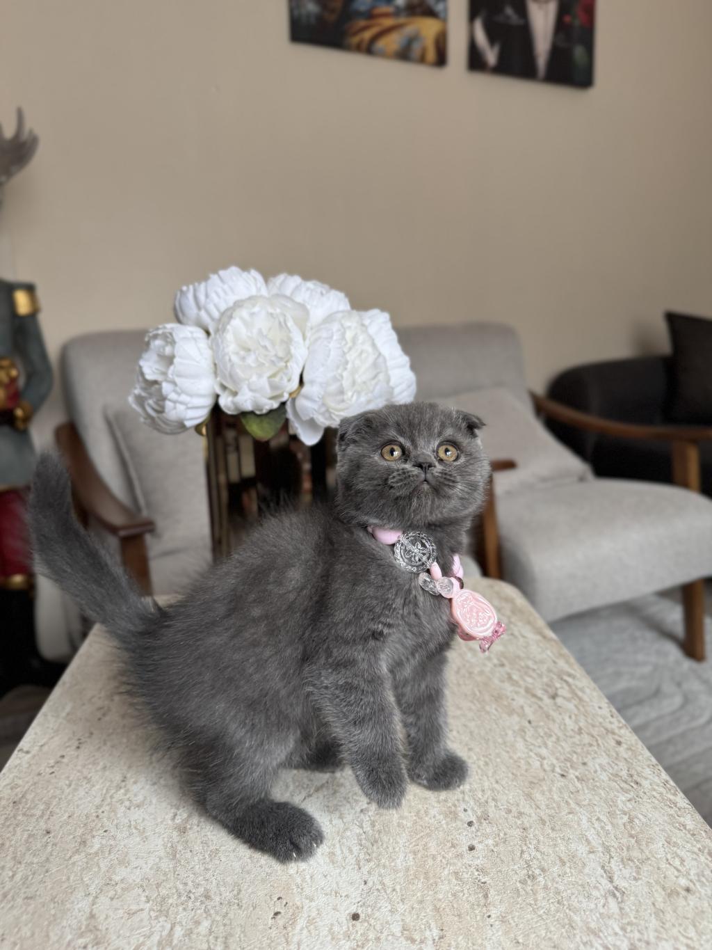 Scottish Fold gri 2 aylık kuru mama yiyor tuvalet eğitimi var parazit aşısı yapıldı bilgi için arayabilirsiniz