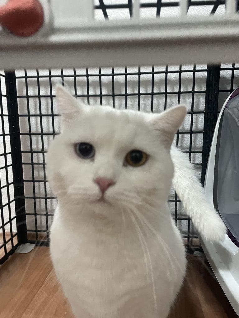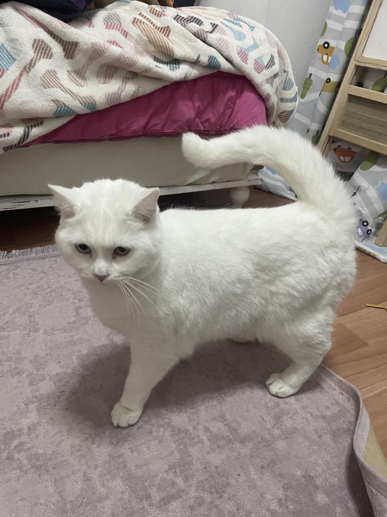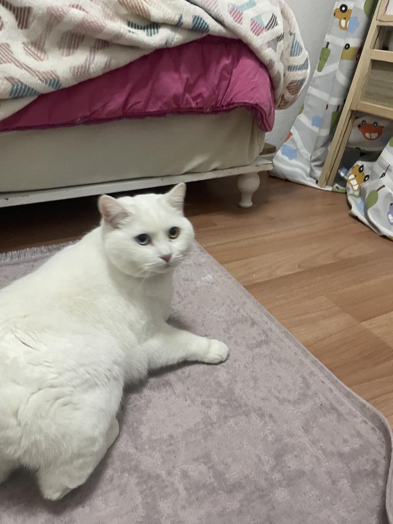 Fotoğraflarda gördüğünüz, biri mavi diğeri sarı gözlü, bembeyaz ve çok asil bir karakteri olan kedimizi ücretsiz olarak sahiplendiriyoruz.