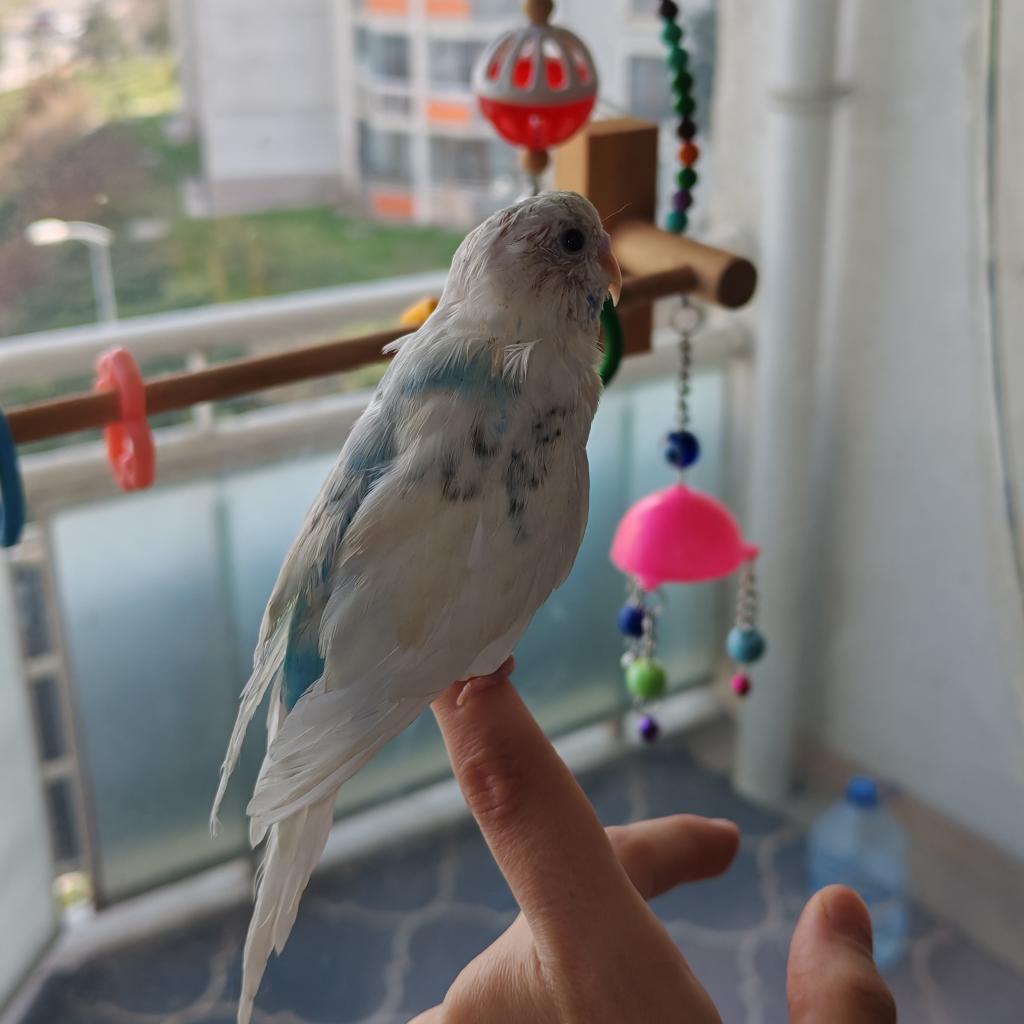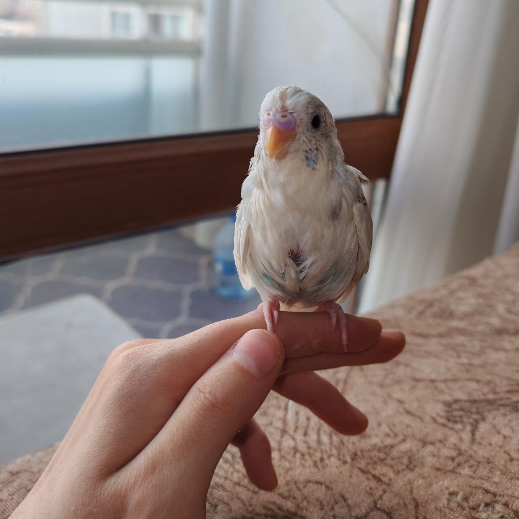 Rengi beyaz mavi erkek albino muhabbet kuşu